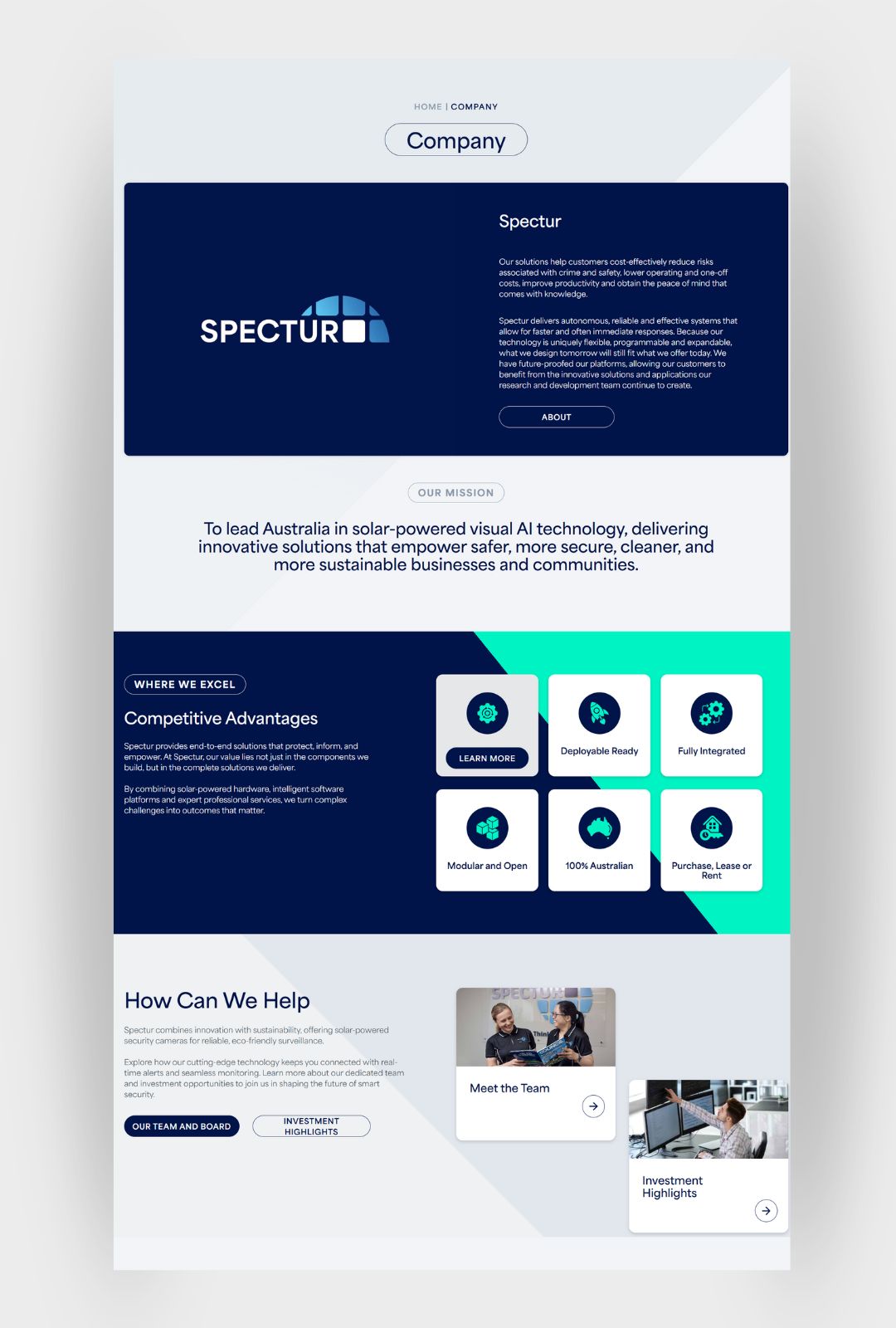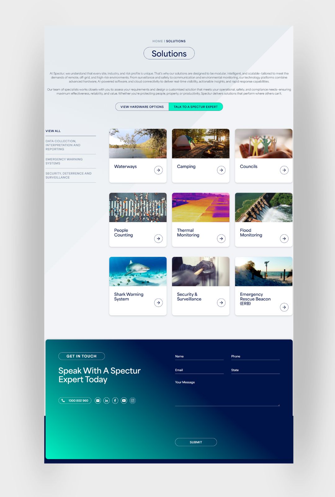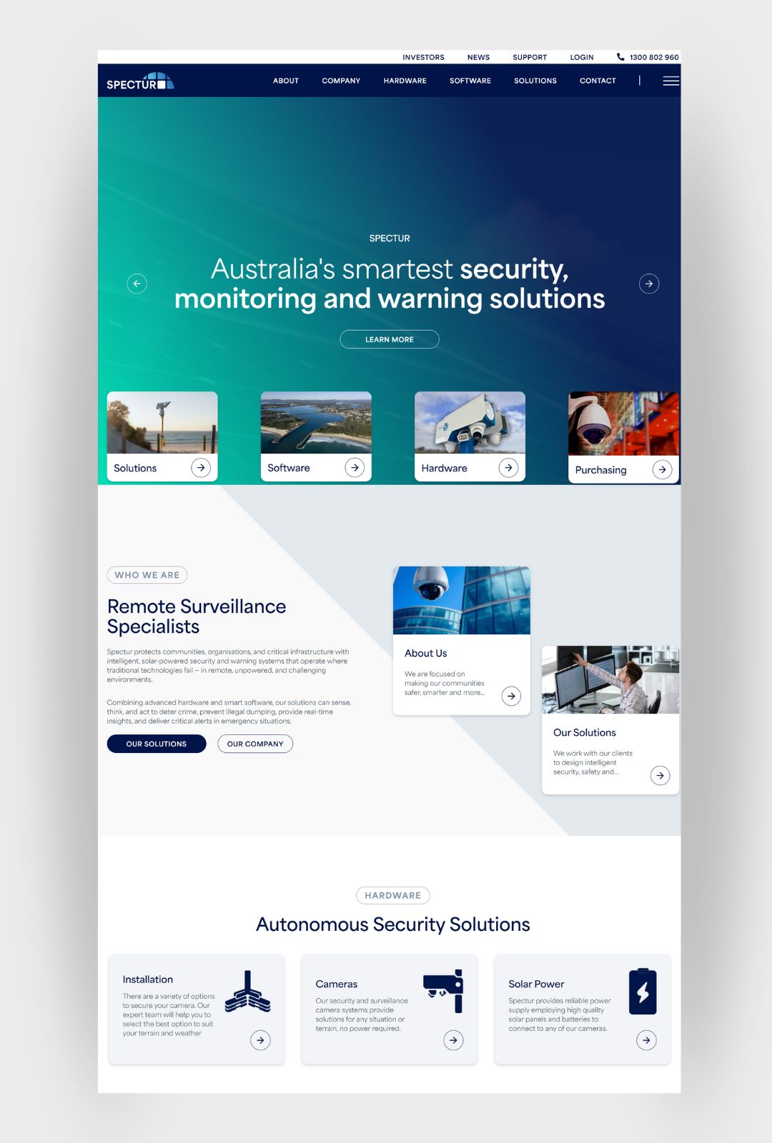 Spectur is an Australian technology company specializing in intelligent security and remote monitoring solutions. The client required a fully custom WordPress website to showcase products, services, and solutions, while providing a flexible content management system for easy updates and scalability.