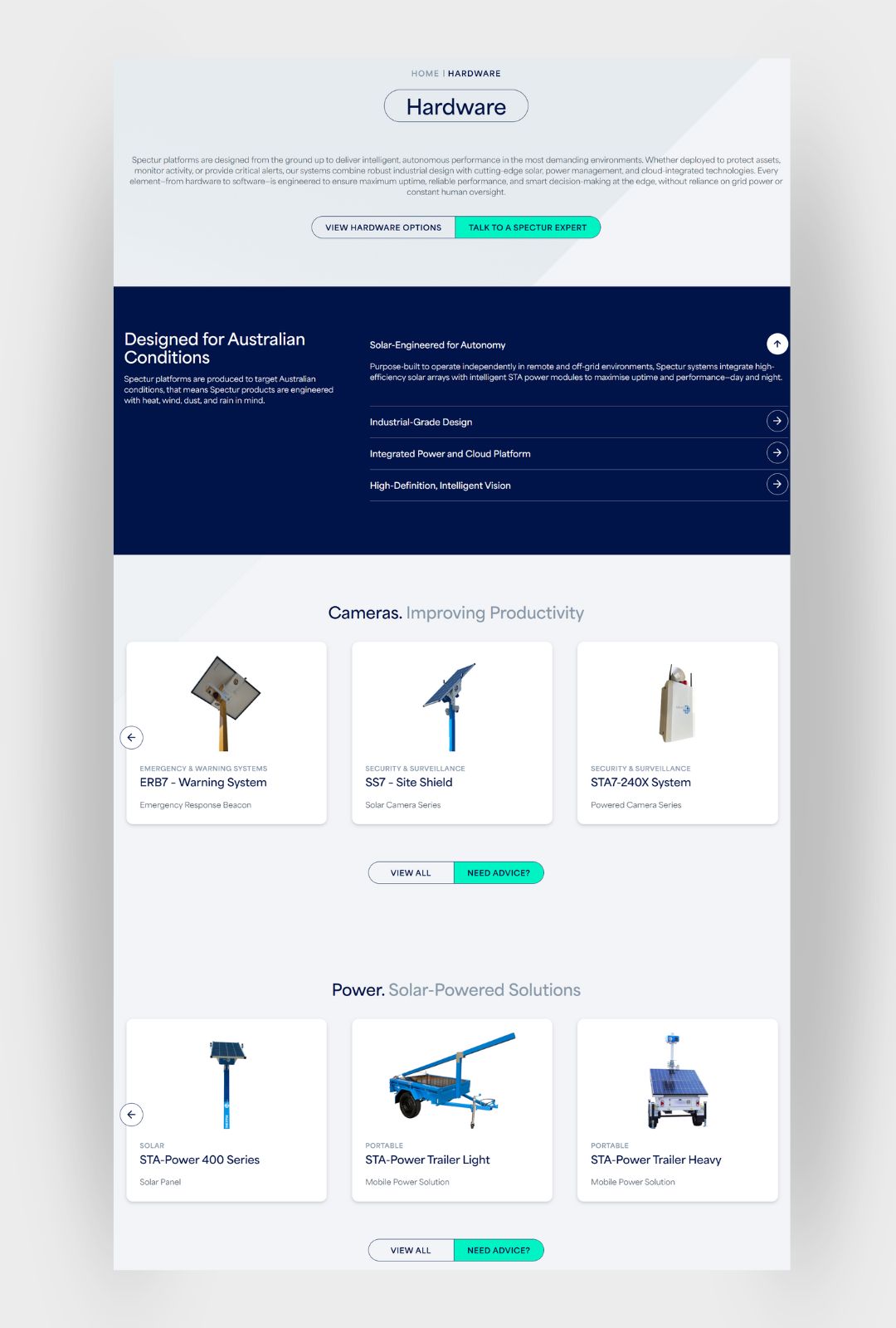To define the direction for Spectur’s new website, I researched multiple security and remote monitoring websites across Australia. I analysed competitors to understand design trends, content structure, product presentation, and how technical solutions are communicated to different audiences.